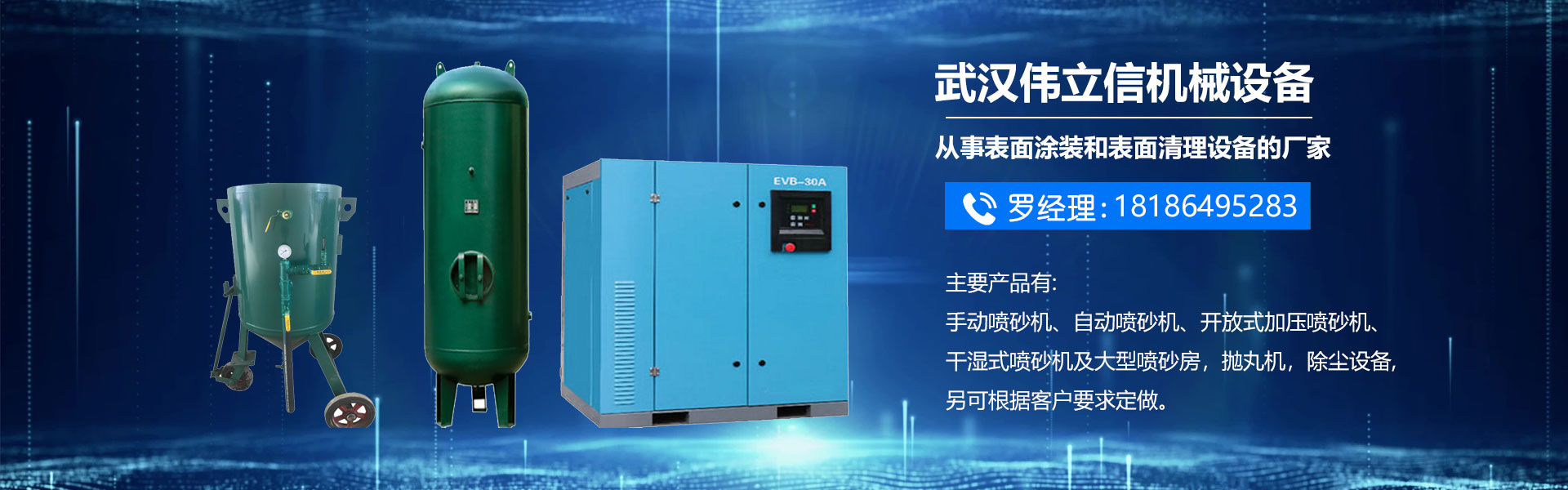 武漢偉立信機械設備有限公司(噴砂熱線:18186495283)是一家從事表面涂裝和表面清理設備的廠家,公司位于武漢市武昌區。是一家集表面涂裝和表面清理設備科研、開發、生產、銷售、服務于一體的綜合型企業。     公司自創建以來,一直秉持認真、負責的態度,以其科學而嚴密的管理,先進而不斷創新的技術,致力于表面處理設備的研制和開發,主要產品有:手動噴砂機、自動噴砂機、開放式加壓噴砂機、干濕式噴砂機及大型噴砂房,拋丸機,除塵設備,另可根據客戶要求定做。低價經營各類噴砂磨料:玻璃珠、鋼砂、鋼丸、不銹鋼丸、鋼絲切丸···